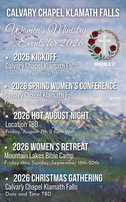 This year our theme verse is Romans 8:37. We will be learning what this verse means together over the course of the year beginning with the Women’s Ministry Kickoff in February. At our Spring Conference we will explore in greater detail the different ways we can live out this verse. In August, we will gather for an evening of games, fun, and fellowship. And in September we will enjoy a couple nights away at Mountain Lakes Bible Camp where we will have time to reflect on this passage, and its implications for our daily lives while enjoying time in nature. In December, we will gather once again for a time of cozy fellowship with soup and goodies as we make our own Christmas wreaths. We look forward to seeing you at this year’s Women’s Ministry events. You can screenshot the save the date below, or grab a printed copy from the church foyer to help you can plan ahead and invite friends to enjoy these events with us in 2026!